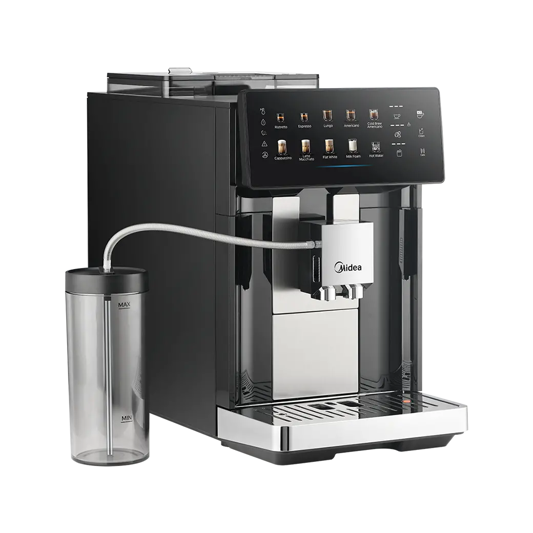 კომპაქტური დიზაინით, ცალკე მდგომი რძის სისტემის ხარჯზე ყავის აპარატი არის ვიწრო(22სმ).