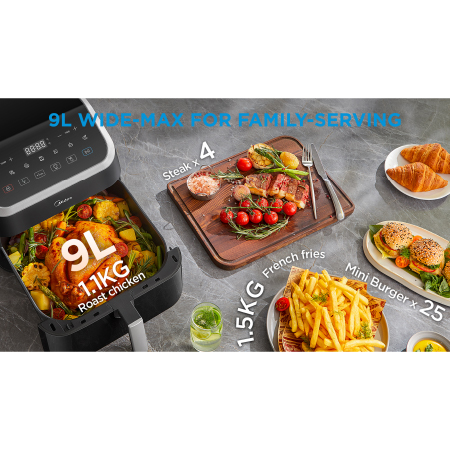 მწარმოებელი: Midea მოდელი: MF-CY85WK2 კატეგორია: აერო გრილი კონტროლი: სენსორული ტემპერატურის რეგულირება: 40-230°C-მდე ფუნქციები: შეწვა, თბილად შენარჩუნების, +1 წუთის ღილაკი (ცხობის უწყვეტად გაგრძელებისთვის). სიმძლავრე: 1900-2200 ვატი მოცულობა: 8.5 ლიტრი ფერი: შავი გარანტია: 2 წელი |
